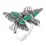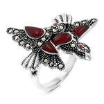 Кольцо из родированного серебра с нат.перламутром и марказитами 925 пробы MR01167P-MOP