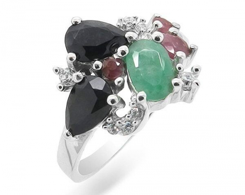 Кольцо, арт.629857 Серебро Серебро 925, р. 18, 2 гр., изумруд