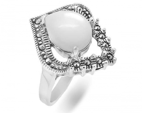 Кольцо из серебра марказит, перламутр, SL-AGA88
