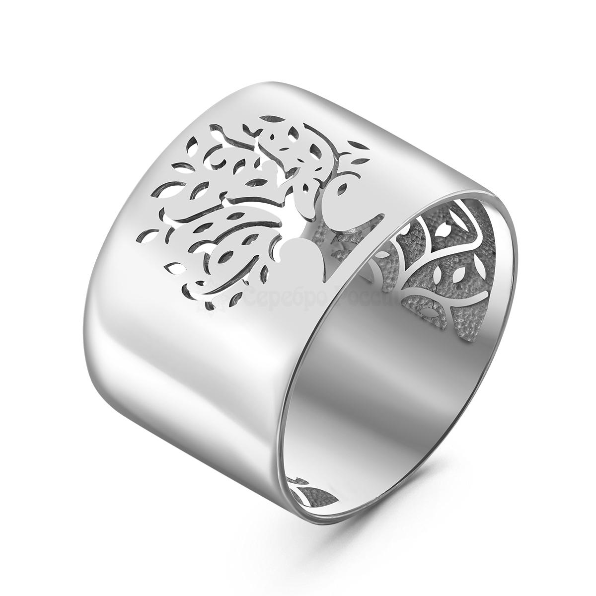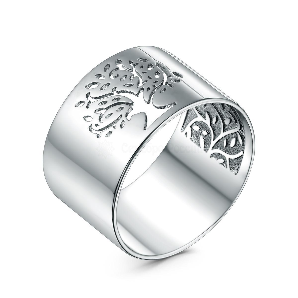 Кольцо широкое из родированного серебра - Дерево жизни 925 пробы 1-1653р