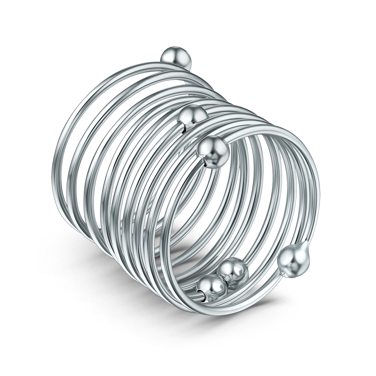 Кольцо из серебра с подвижными бусинами родированное - Пружинка 925 пробы N0235RH