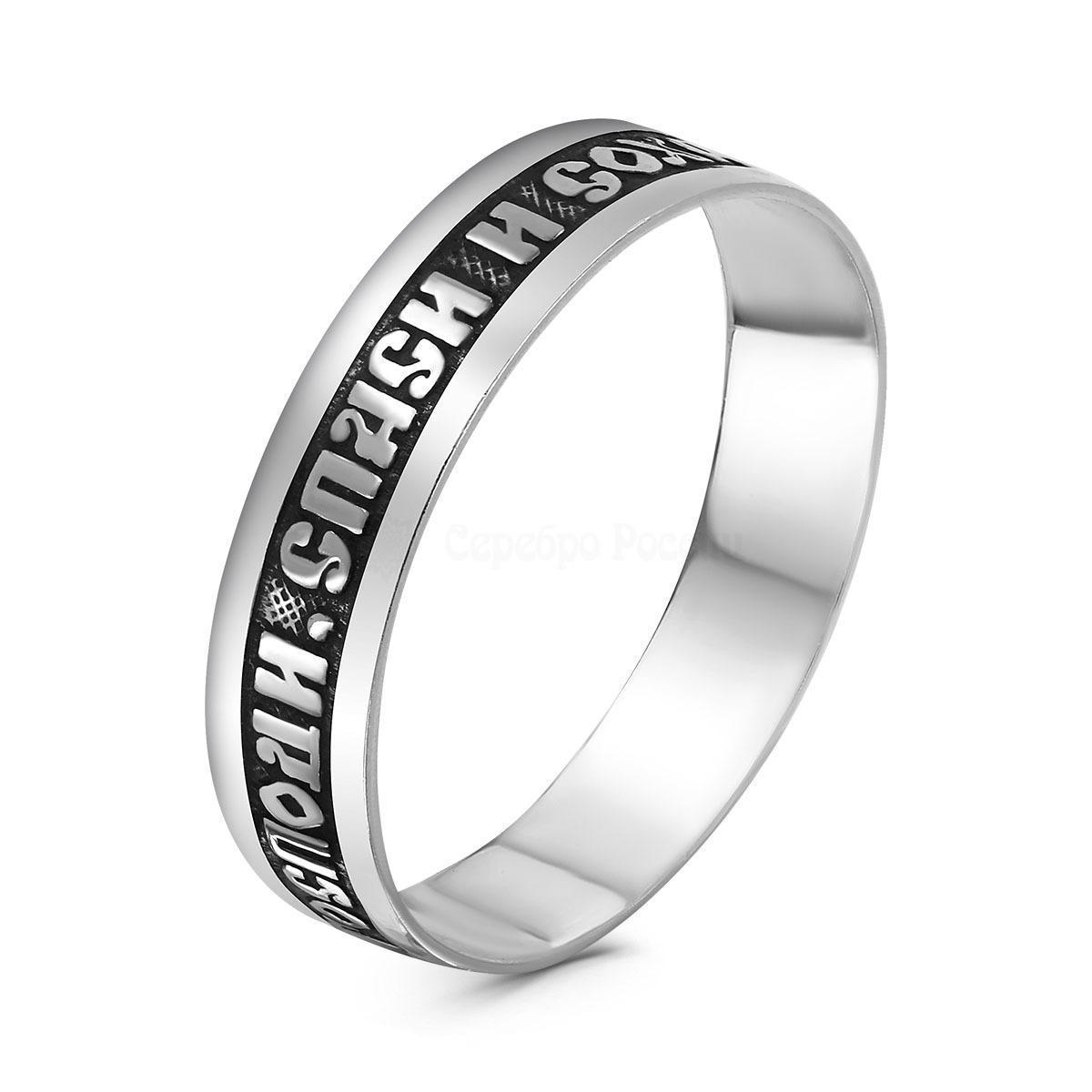Кольцо из серебра родированное с чернением "Спаси и сохрани" 925 пробы 20-012