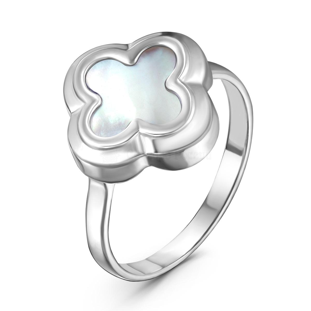 Кольцо из серебра с белым перламутром родированное 925 пробы 411-10-261-1р