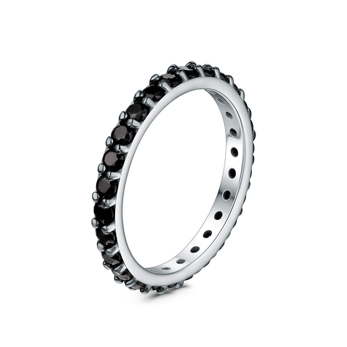 Кольцо из серебра с фианитами родированное 111-10-76ч-16р