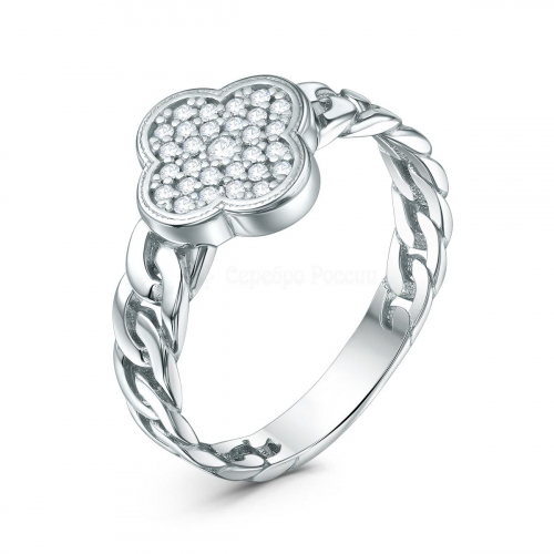 Кольцо из серебра с фианитом родированное - Прямоугольник 1-037р200