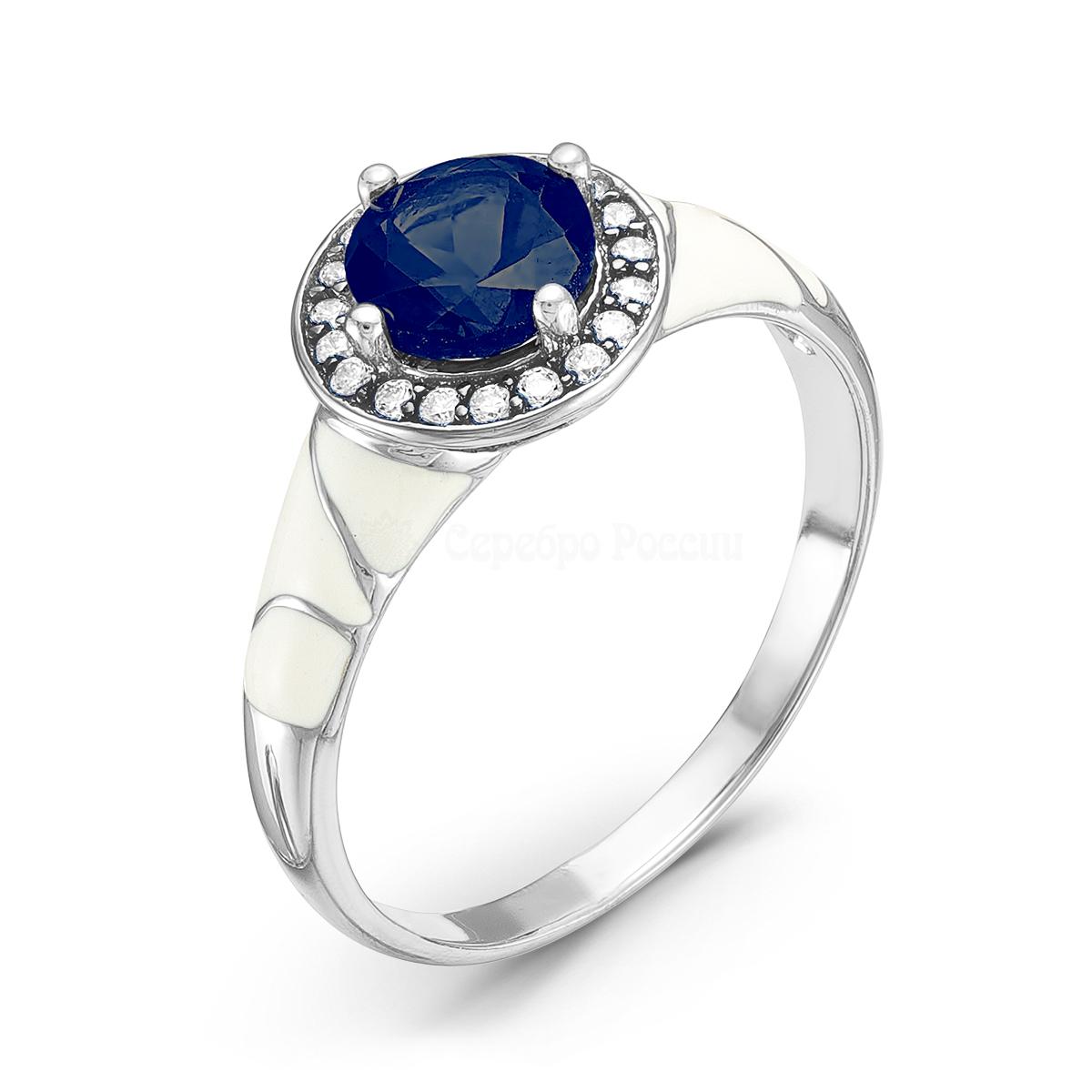 Кольцо из серебра с корундом сапфировым, куб.цирконием и эмалью родированное 925 пробы RR170801р40800