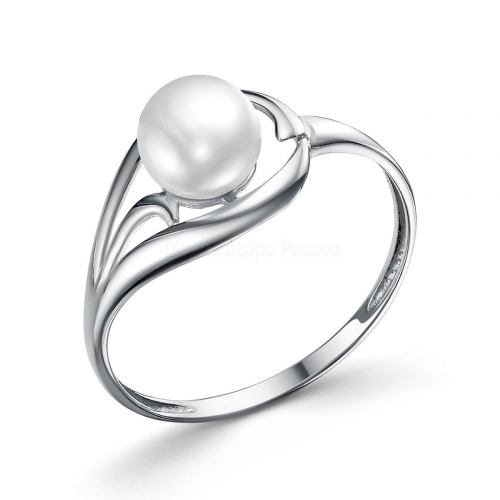 Кольцо из серебра с культивированным жемчугом и фианитами родированное 925 пробы 04-701-0069