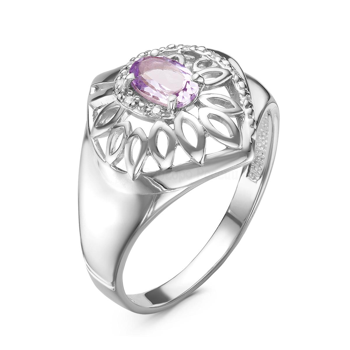 Кольцо из серебра с нат.аметистом и фианитами родированное 925 пробы К-3546рс40100