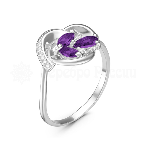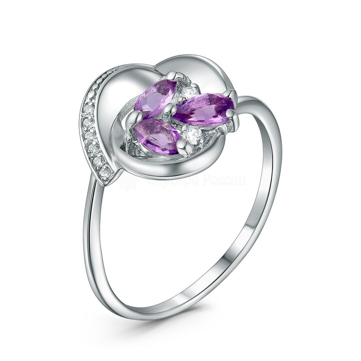 Кольцо из серебра с натуральным аметистом и фианитами родированное 925 пробы 310075-401р