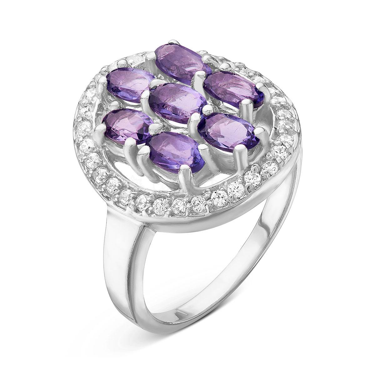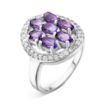 Кольцо из серебра с нат.аметистом и фианитами родированное 925 пробы 1-МЭ-11р401