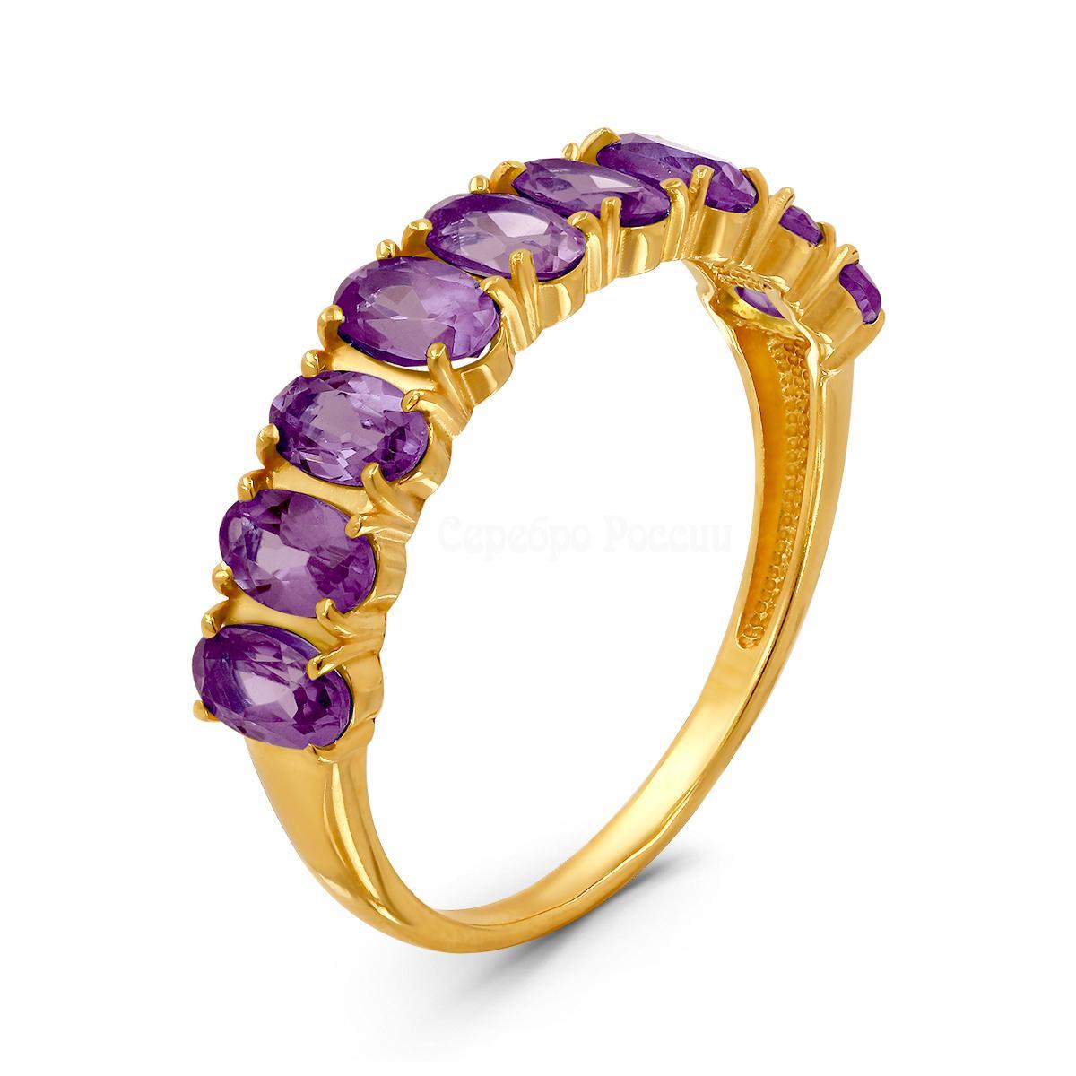 Кольцо из серебра с нат.аметистом (лимонное золочение) 925 пробы К-3714злс401