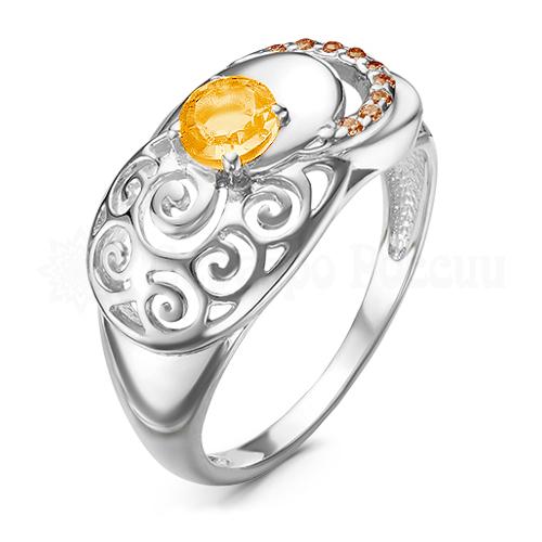 Кольцо из серебра с нат.цитрином и фианитами родированное 925 пробы К-3542рс405249