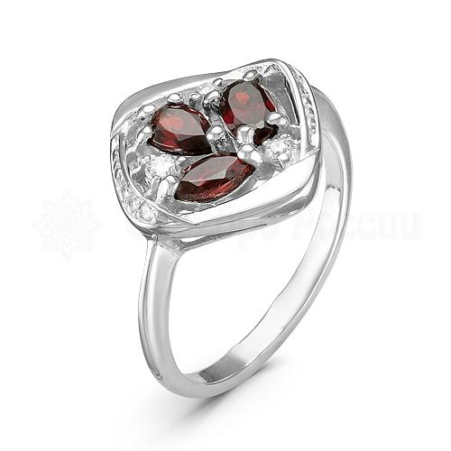 Кольцо из серебра с нат.гранатом и фианитами родированное 925 пробы 310076-404р
