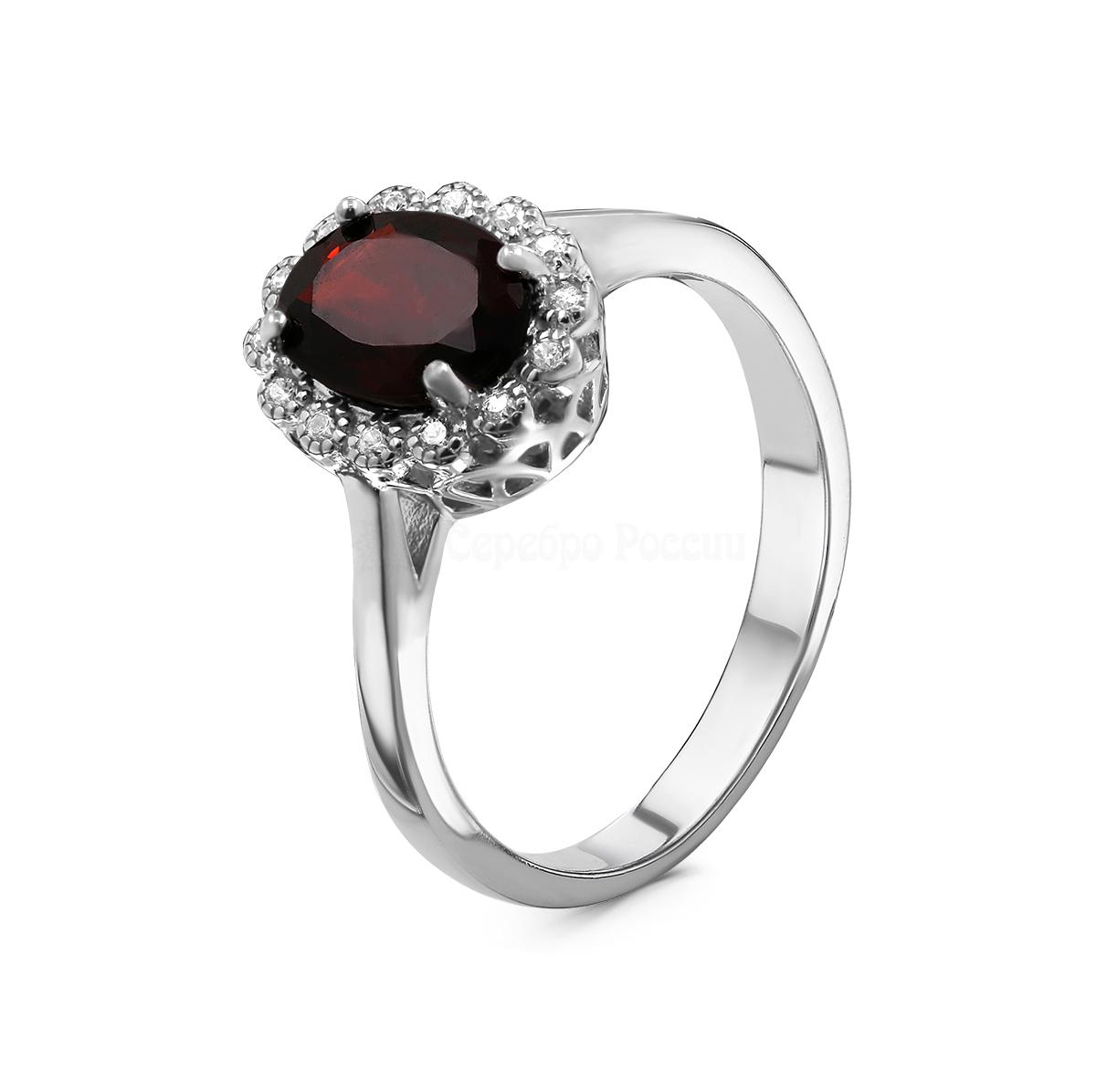 Кольцо из серебра с нат. гранатом и куб. цирконием родированное 925 пробы TMR-066
