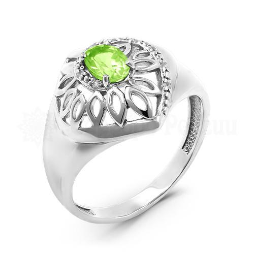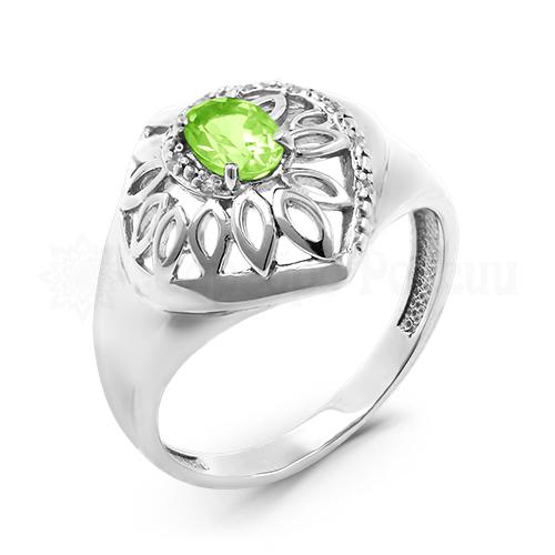 Кольцо из серебра с нат.хризолитом и фианитами родированное 925 пробы К-3546рс40600