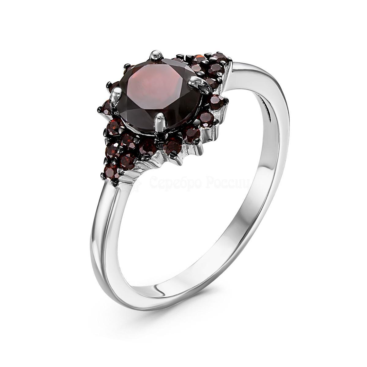 Кольцо из серебра с нат. и синт. гранатами родированное 925 пробы RR170901