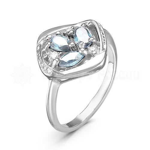 Кольцо из серебра с нат.топазом sky и фианитами родированное 925 пробы 310076-402р