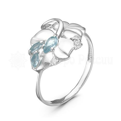 Кольцо из серебра с нат.топазом sky и фианитами родированное 925 пробы 310080-402р