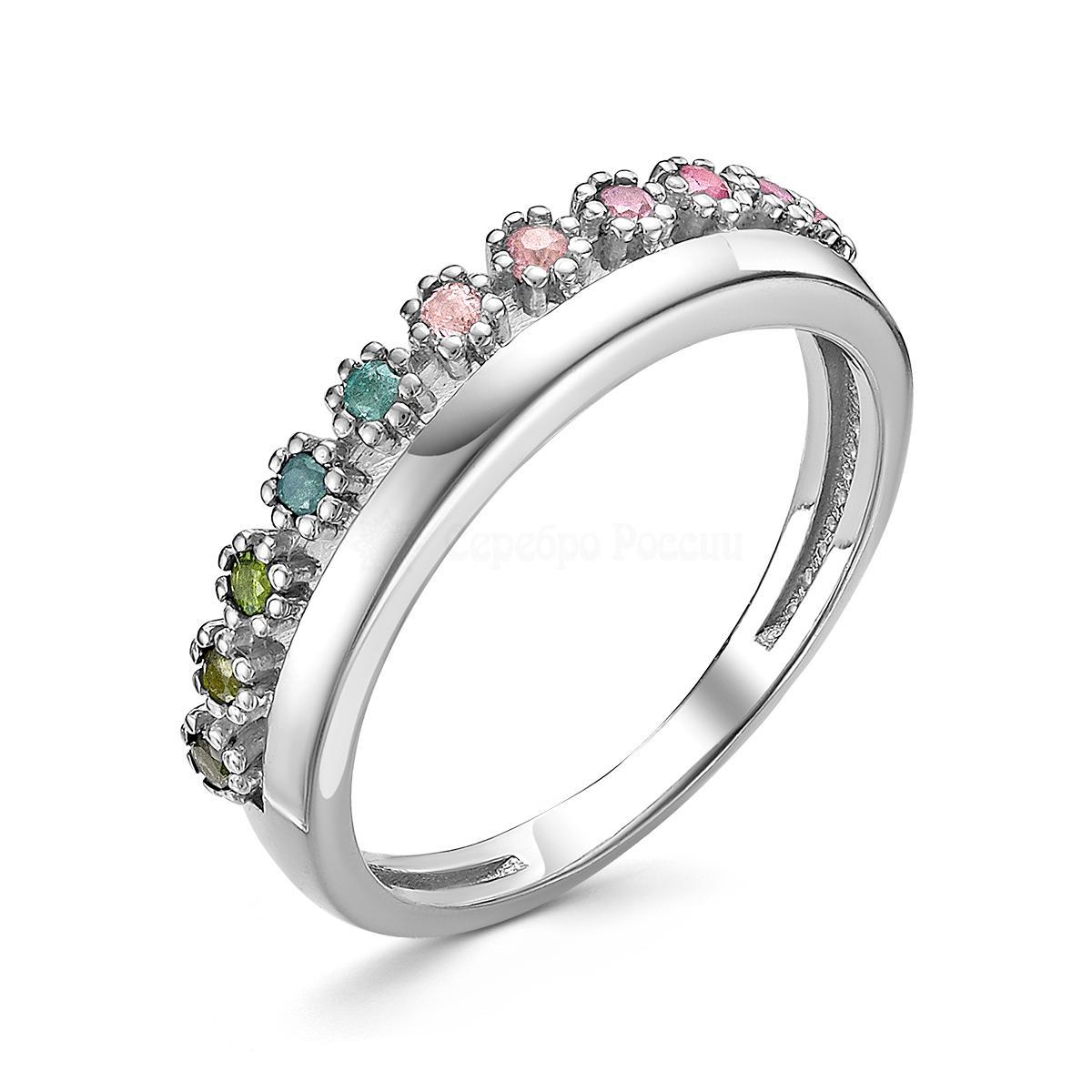 Кольцо из серебра с нат.турмалинами микс родированное 925 пробы 11867р428