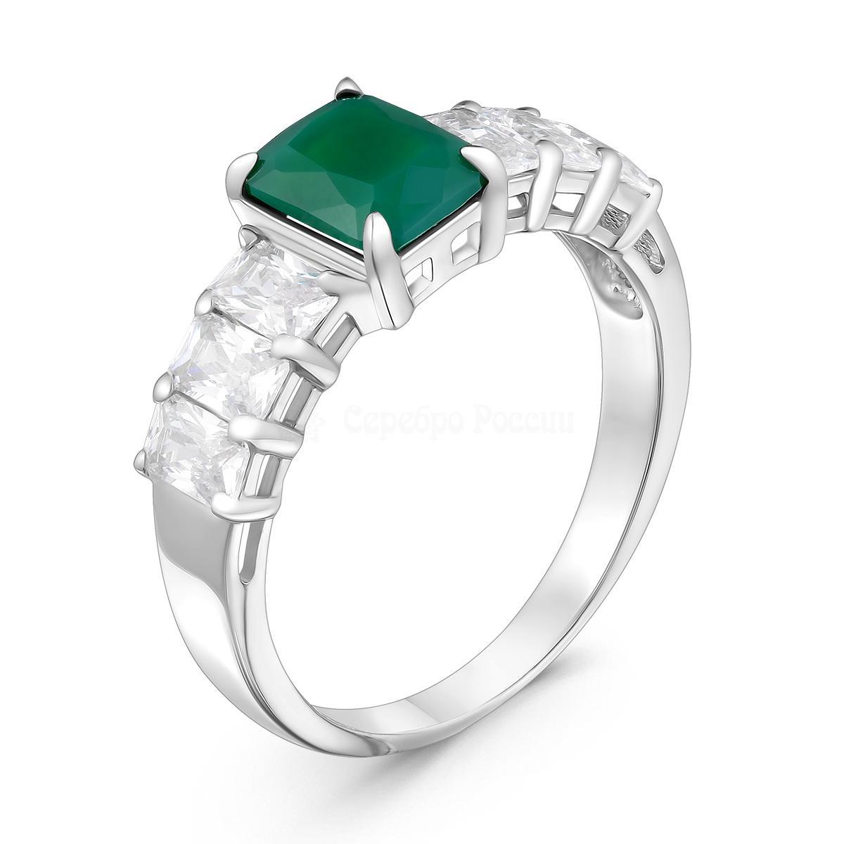 Кольцо из серебра с нат.зелёным агатом и фианитами родированное 925 пробы К-3782рс40900