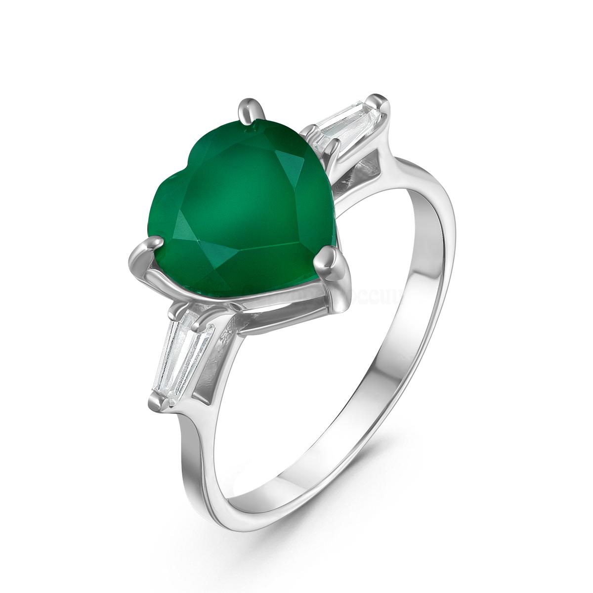 Кольцо из серебра с нат.зелёным агатом и фианитами родированное 925 пробы К-3751рс409200