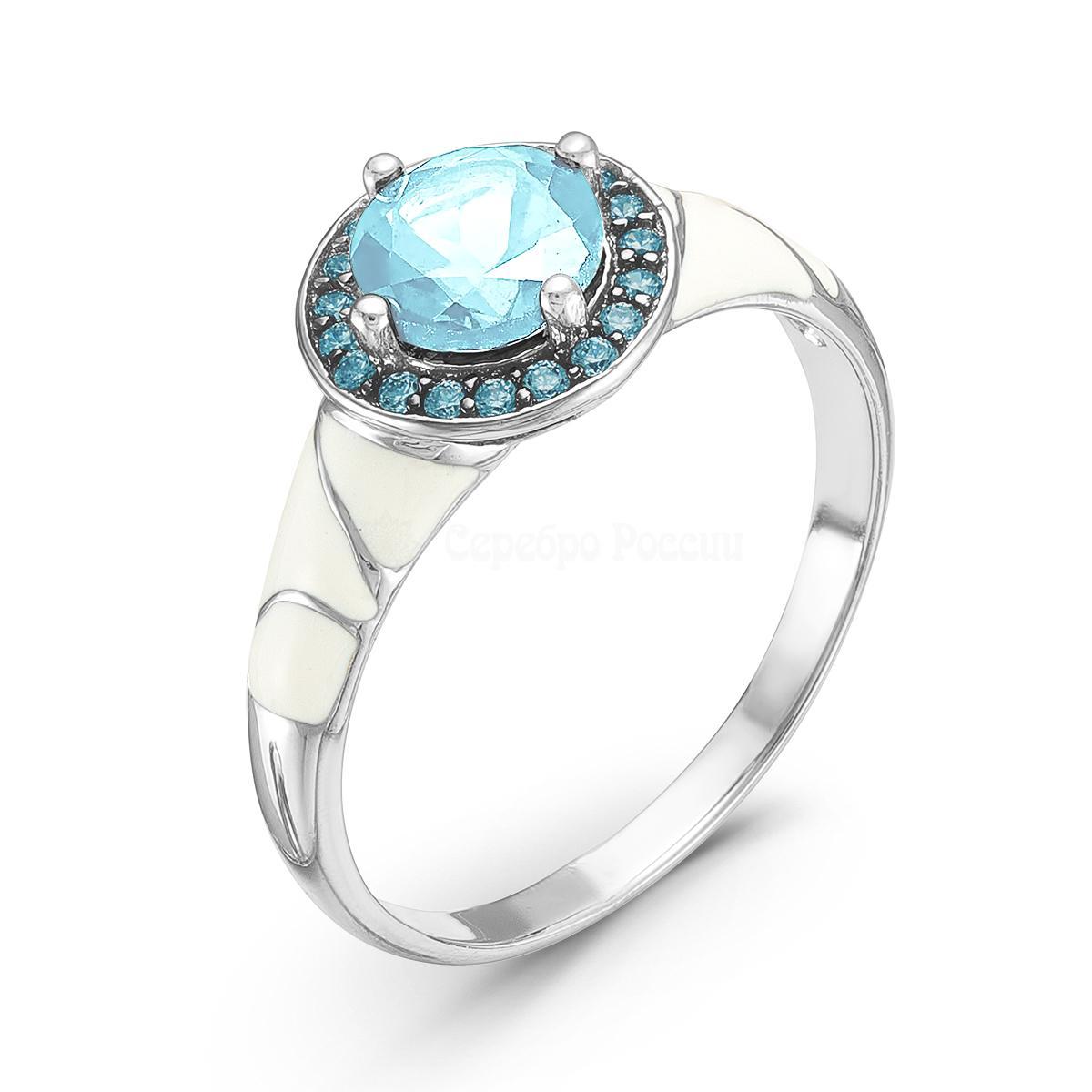Кольцо из серебра с натуральным топазом, наноситаллом цвета топаз и эмалью родированное 925 пробы RR170803р402