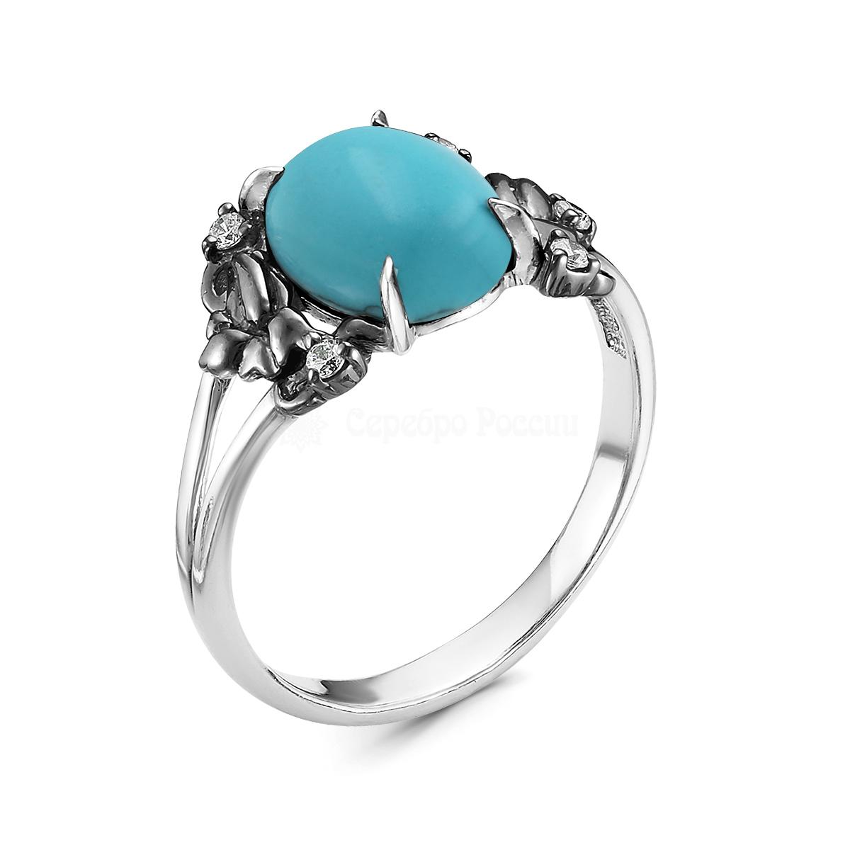 Кольцо из серебра с рек.бирюзой и фианитами родированное 925 пробы К-3503рк63800