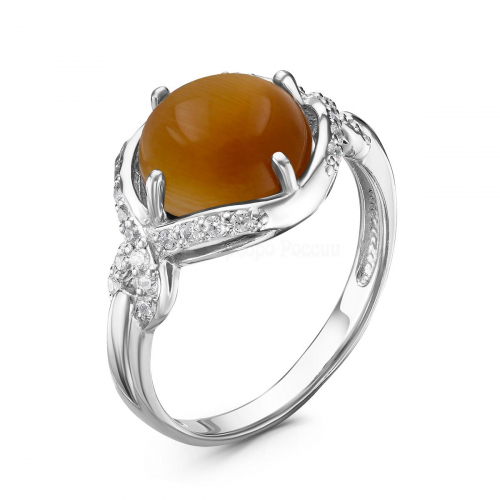 Кольцо из серебра с рек.кошачьим глазом и фианитами родированное 925 пробы КП61р655