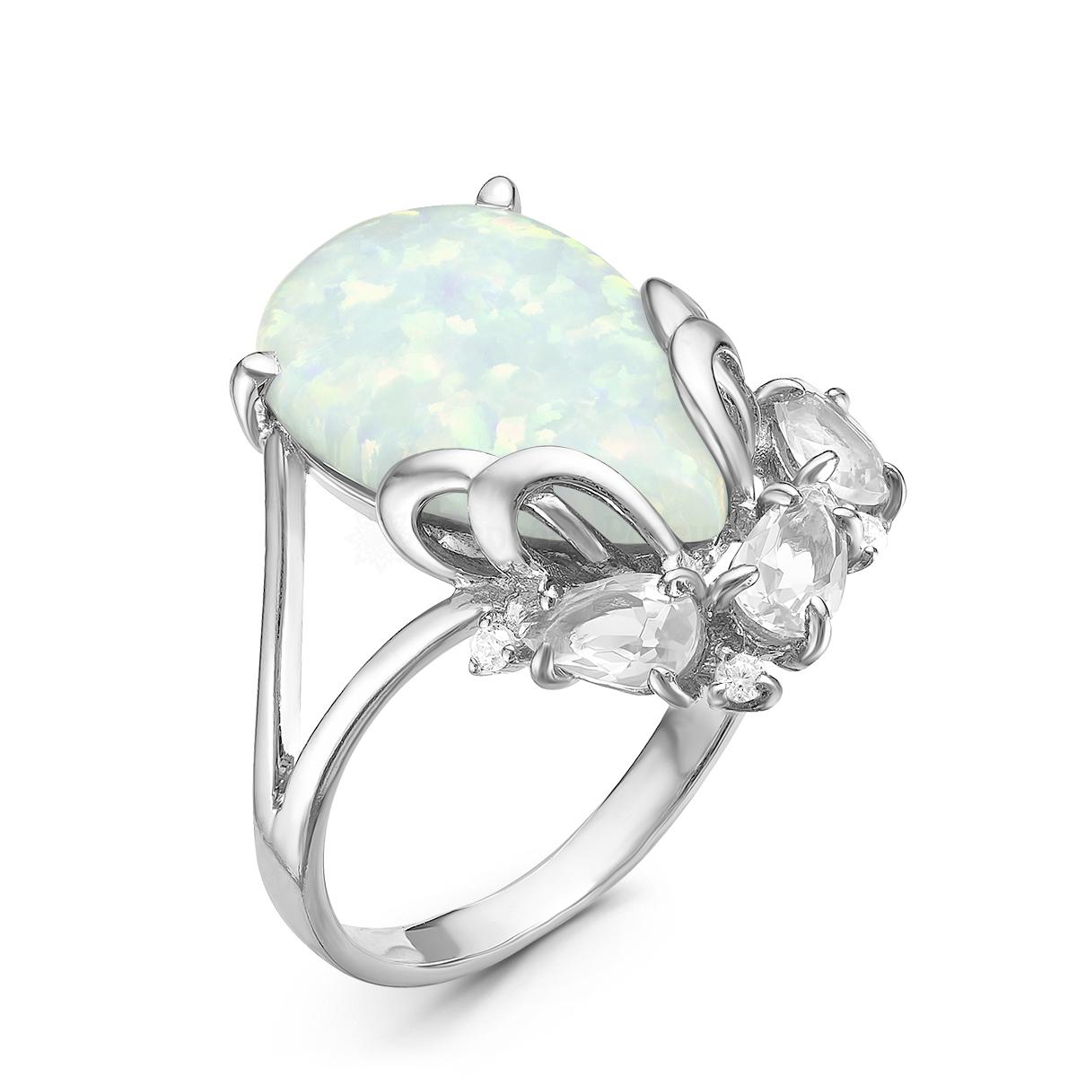 Кольцо из серебра с синт. опалом, пл. кварцем цв. празиолит и фианитами родированное 925 пробы К-3395рк77011200