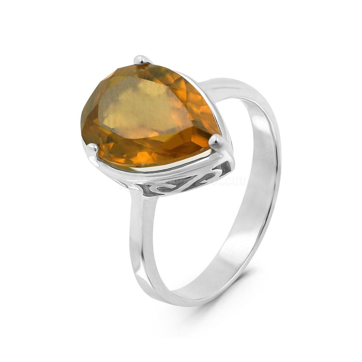 Кольцо из серебра с ситаллом цвета султанит родированное 925 пробы TMR-076
