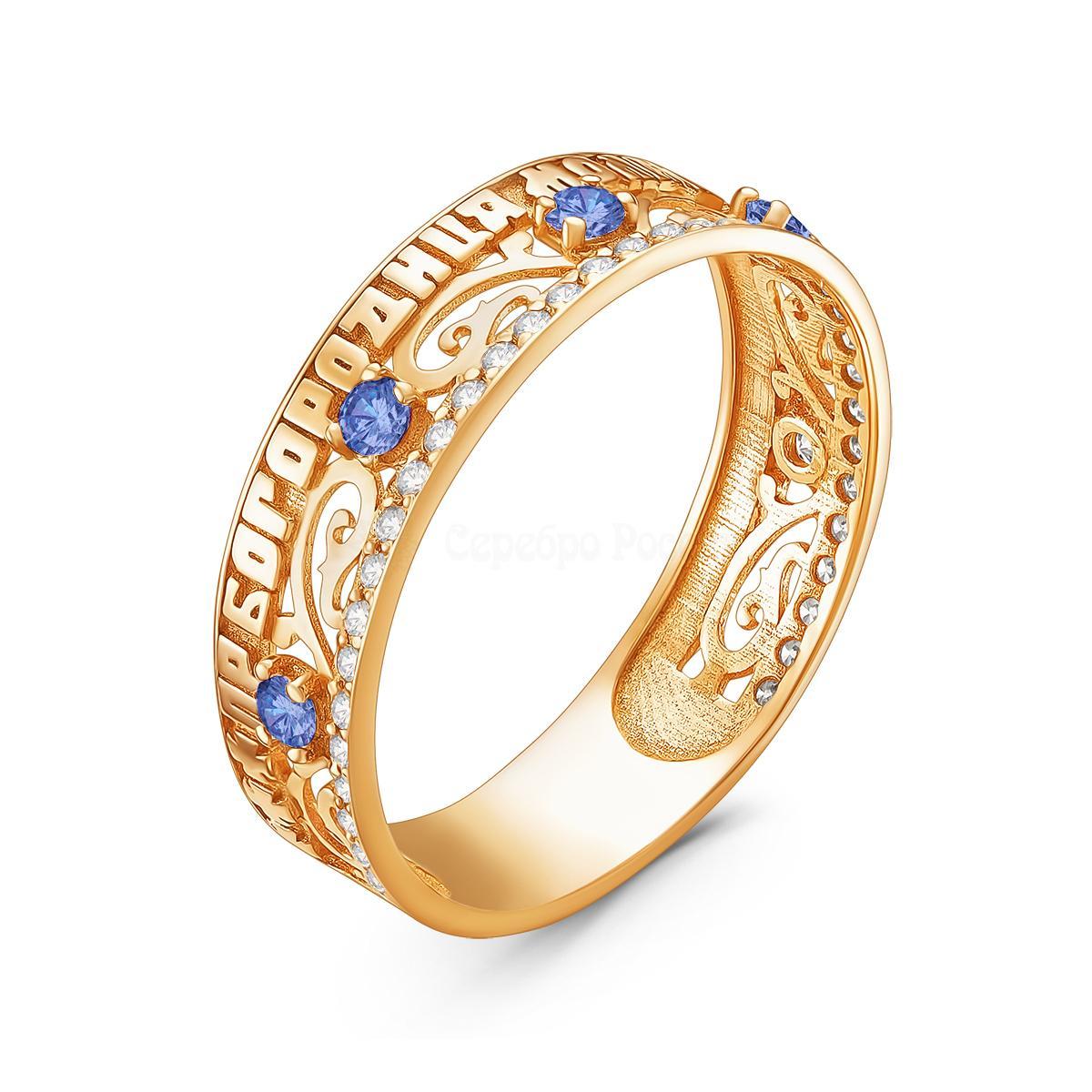 Кольцо из золочёного серебра с фианитам - Спаси и сохрани к-2532-з кварц сапфир