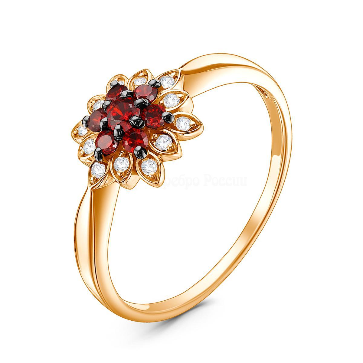 Кольцо из золочёного серебра с фианитами и родированием 925 пробы К-3826зчрс20400