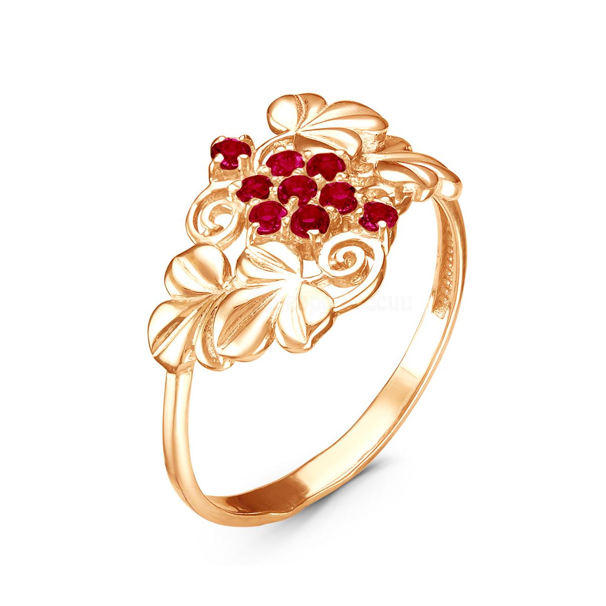 Кольцо из золочёного серебра с рубиновым корундом 925 пробы 310079з915