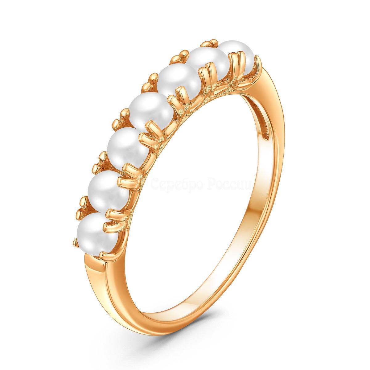 Кольцо из золочёного серебра с культ.жемчугом 925 пробы К-3988зж1005