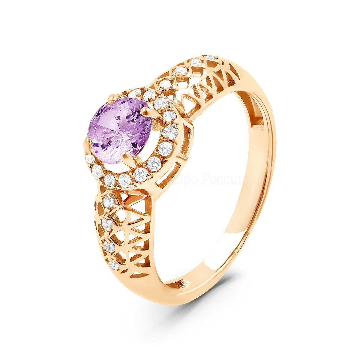 Кольцо из золочёного серебра с нат.аметистом и фианитами 925 пробы 310093з401