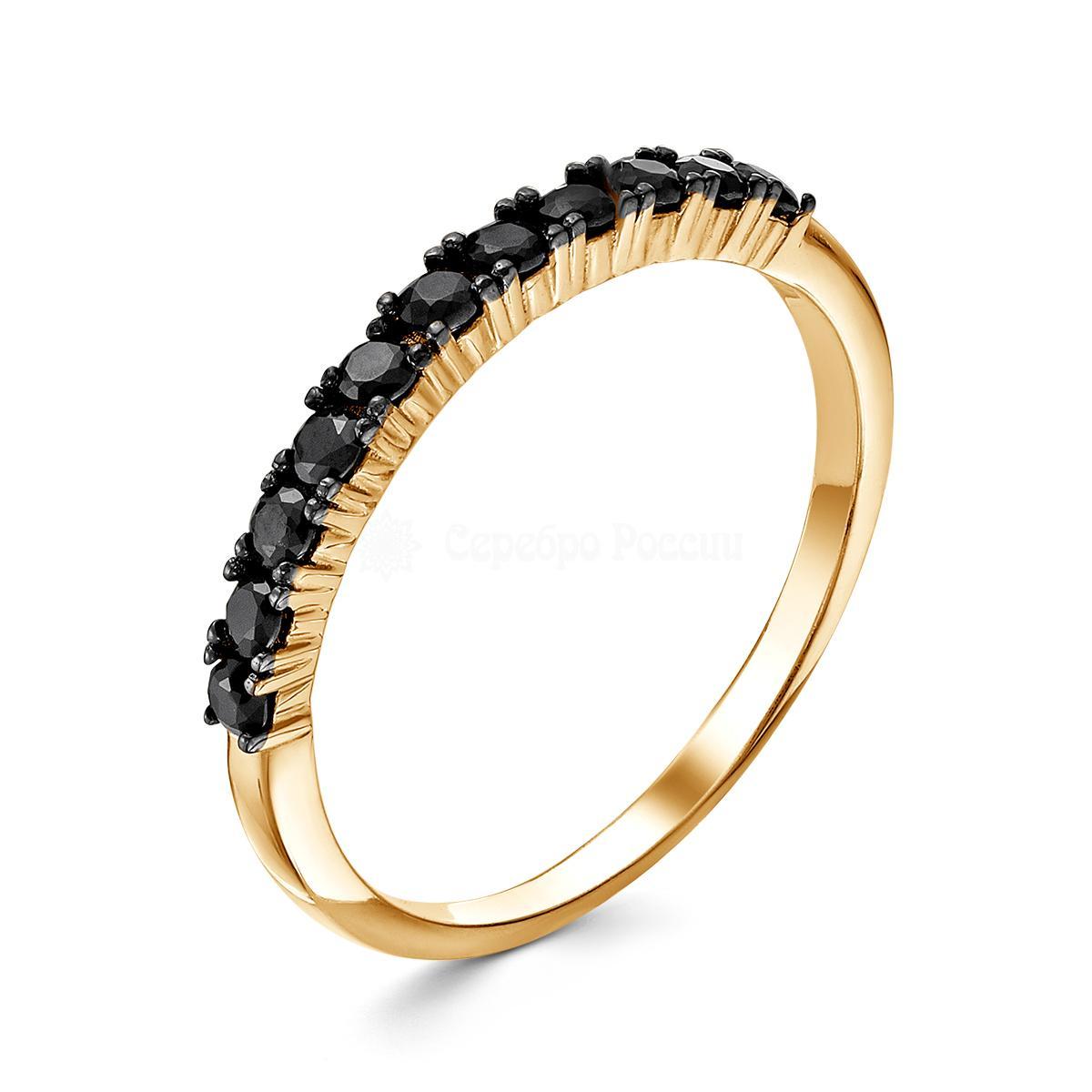 Кольцо из золочёного серебра с нат.чёрной шпинелью 925 пробы к-7237з416