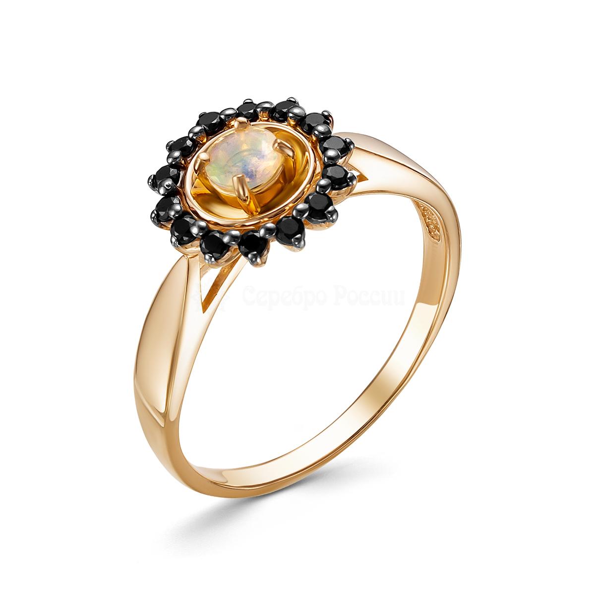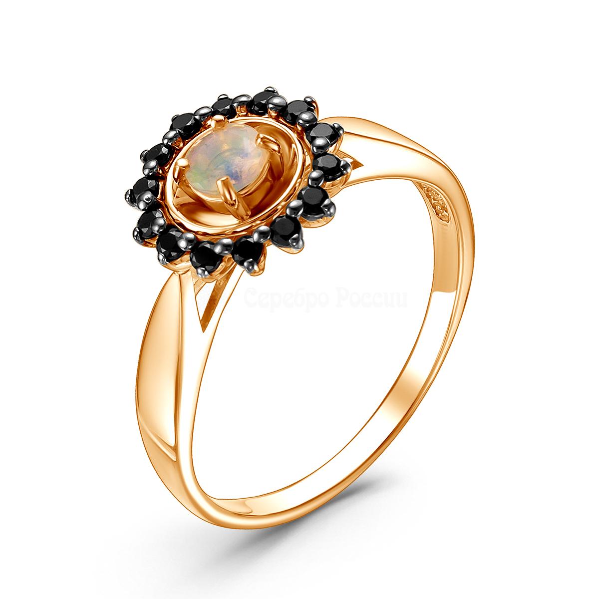 Кольцо из золочёного серебра с нат.эфиопским опалом и фианитами 925 пробы К-3767зрс1170216