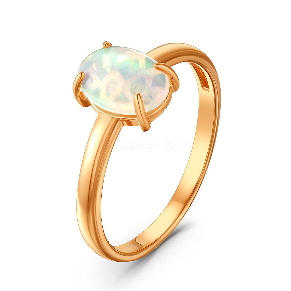 Кольцо из золочёного серебра с нат.эфиопским опалом 925 пробы К-3769зк1170