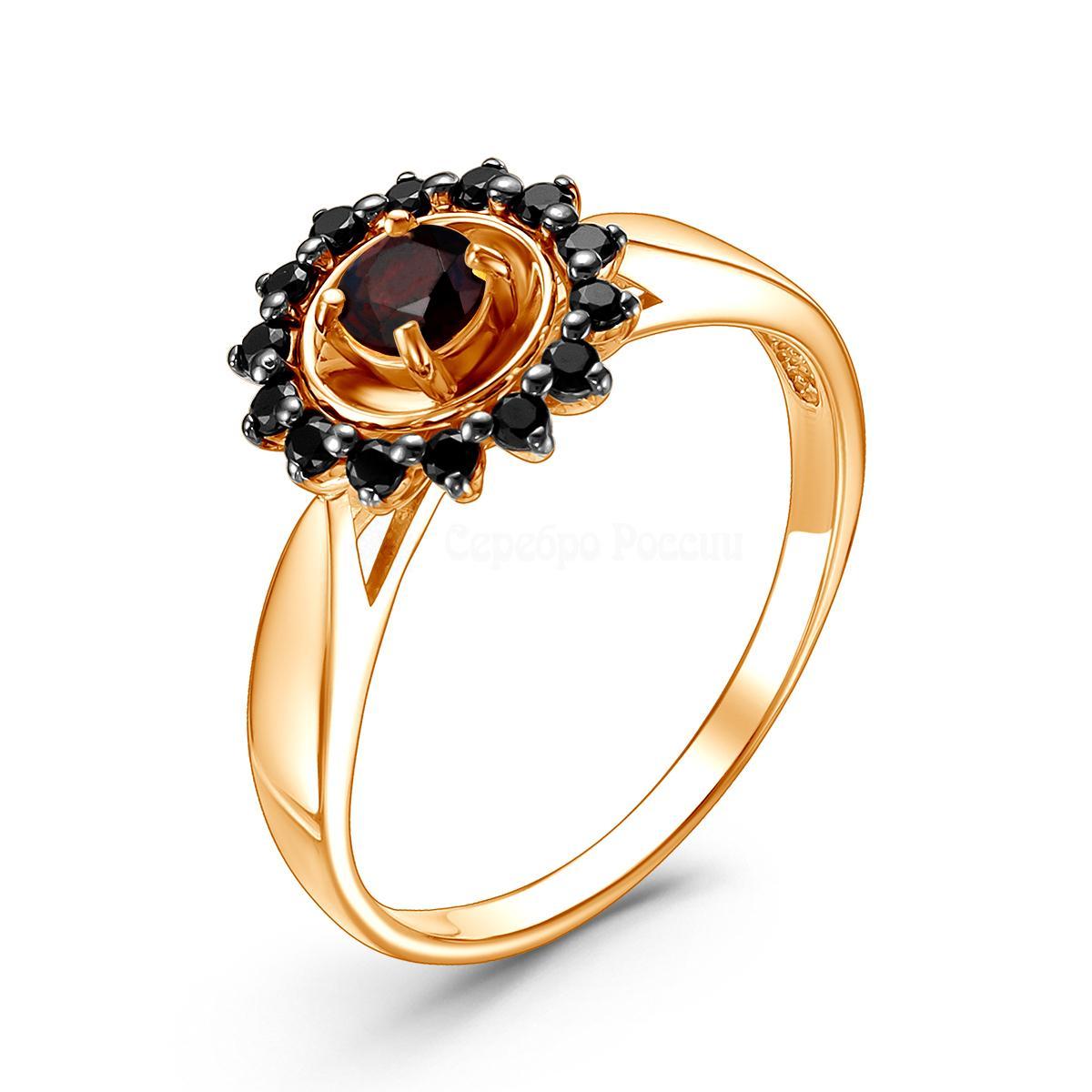 Кольцо из золочёного серебра с нат.гранатом, фианитами и родированием 925 пробы К-3767зр404216