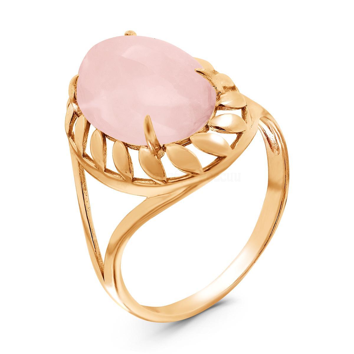 Кольцо из золочёного серебра с нат.розовым кварцем 925 пробы 0052кз421