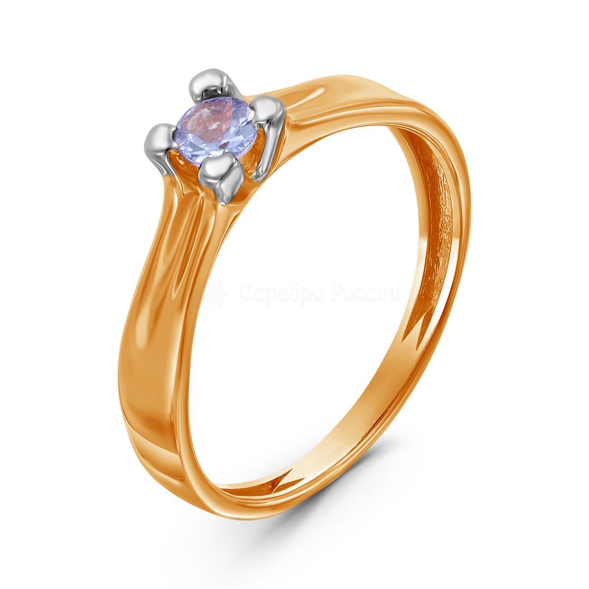 Кольцо из золочёного серебра с нат.танзанитом 925 пробы п1-562зр447