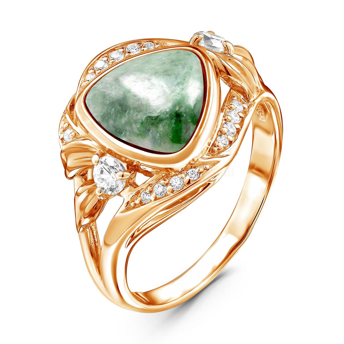 Кольцо из золочёного серебра с нат.жадеитом и фианитами 925 пробы С-3635зрк46400
