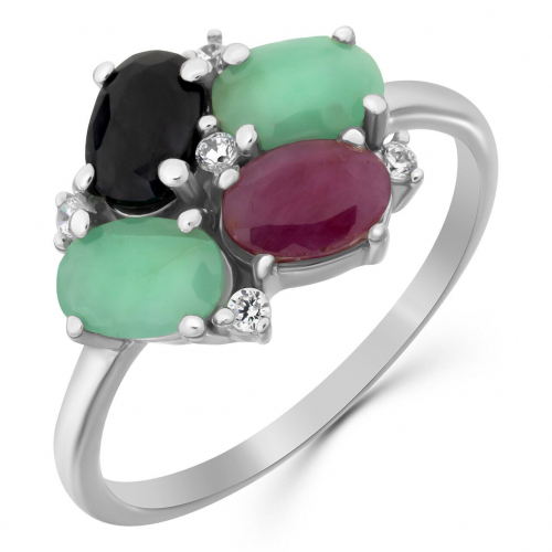 Кольцо, арт.653020 Серебро Серебро 925, р. 17, 2,54 гр., изумруд берилл , рубин корунд , сапфир корунд