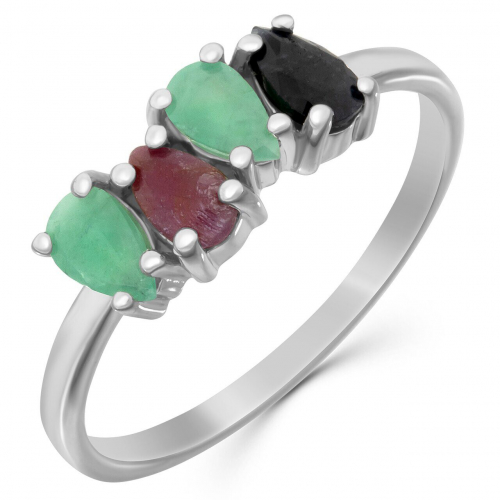 Кольцо, арт.653142 Серебро Серебро 925, р. 16.5, 2,02 гр., изумруд берилл , рубин корунд , сапфир корунд