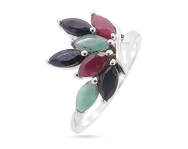 Кольцо из серебра изумруд, рубин, сапфир, Явь