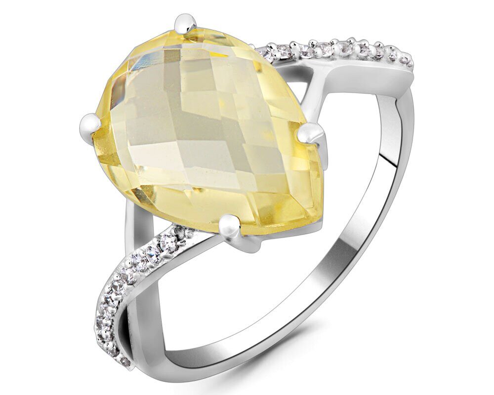 Кольцо, арт.656016 Серебро Серебро 925, р. 18, 3,27 гр., лимонный топаз