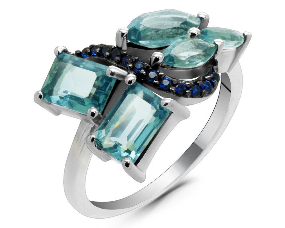 Кольцо из серебра лондон топаз кварц, наносапфир, Бернарда