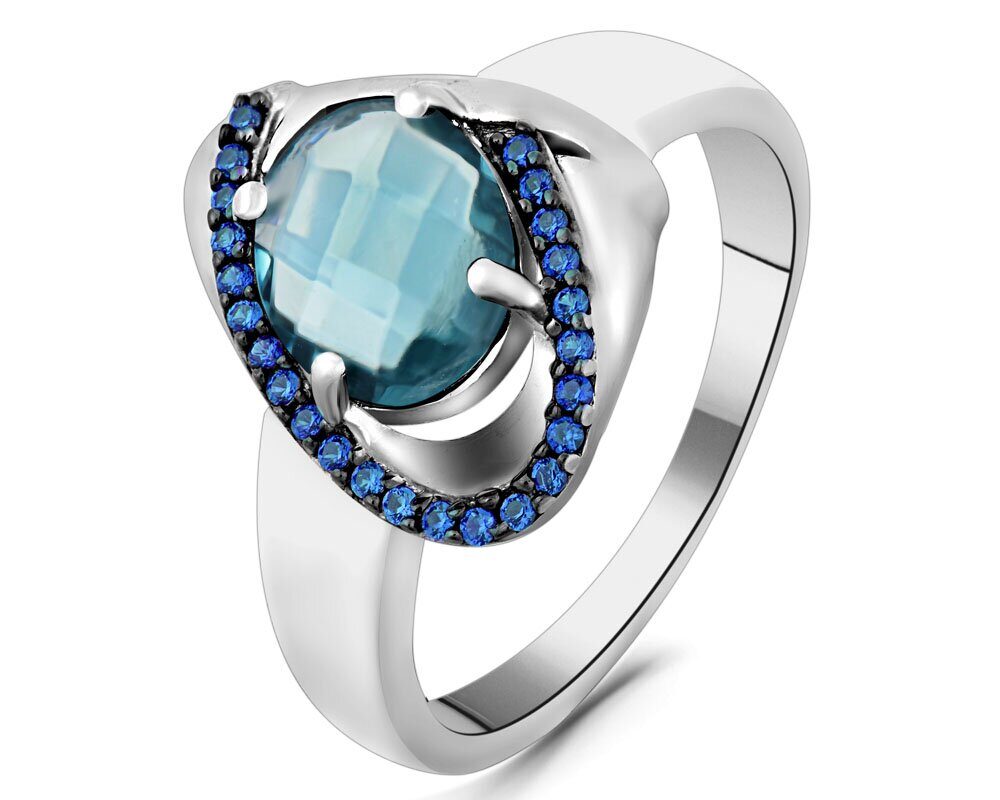 Кольцо, арт.656022 Серебро Серебро 925, р. 17, 3,31 гр., лондон топаз кварц , наносапфир