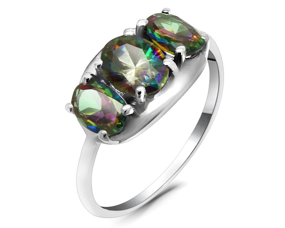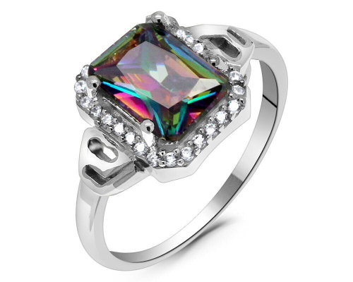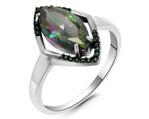 Кольцо из серебра мистик кварц, Микра