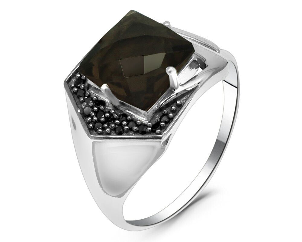 Кольцо из серебра раухтопаз, шпинель, Жанис